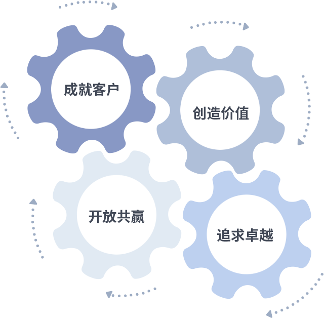 成就客户是一切决策的出发点,创造价值是衡量所有工作的标准,追求卓越是泛亚电竞做事做人的态度,开放共赢是泛亚电竞的格局也是最终的结果。价值观的齿轮环环相扣,推动着组织里的每个人不断向前。